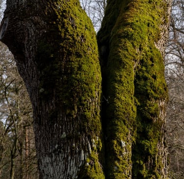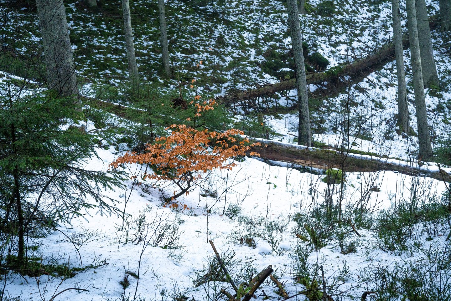 What else stand out? Percussion of marcescent (retaining their leaves) young oaks (Quercus robur) and… speckled maps of lichens. Because of the global warming, we will see more marcescent trees in our forests soon as the distribution area of European beech (Fagus sylvatica) moves north.