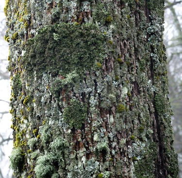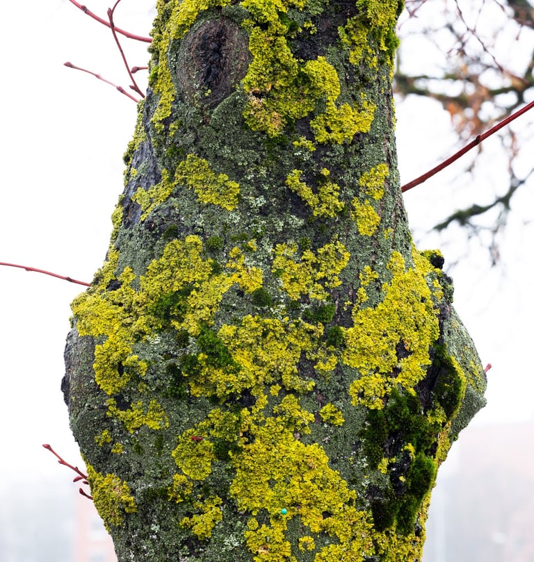 Do lichens cause degradation of the tree's bark? Not at all, as the tree's bark has a natural ability to regenerate. Lichens don't derive nutrients directly from the bark; rather, they simply utilize trees as a habitat, a place to call home, a support.
