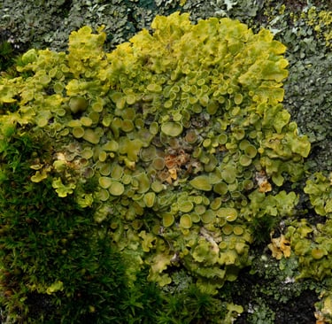 Lichens, who are they? It's a fungi, an ecosystem, where fungi have adapted to a unique way of obtaining nutrients and lives with other partners like algae or/and cyanobacteria, yeast, bacteria, amoebas, and viruses.