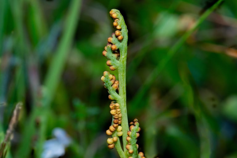 Each sporangium holds approximately 2,000 spores. It disperses over distances ranging from a few centimeters to several meters. The spores are resilient waiting for the right conditions — moisture and mycorrhizal associations — to germinate and grow into new plants. Researchers study how these spores travel through wind and even how they may be dispersed by animals, thanks to their protective, thick walls that aid in survival.