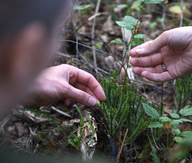 Now, fast forward a year — same month, same woods. We are accompanied by lovely humans eager to journey into the world of lycopods, those ancient botanical wonders. We had a chat about how they've influenced ecosystems both ancient and present, how they deal with stuff like resilience and adaptation (and how we as humans (not)understand it), and even their kind of mysterious methods of securing future generations.