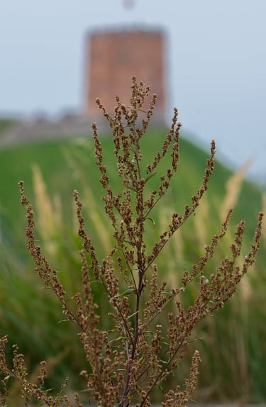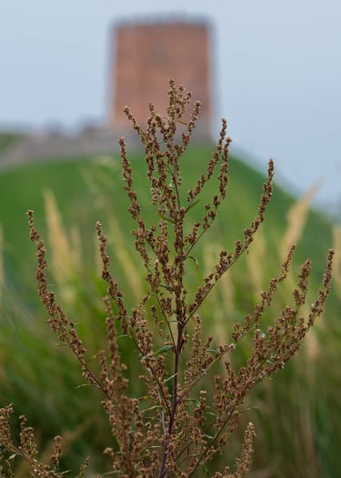 Native ruderal plant of Vilnius, the Common mugwort | Artemisia vulgaris in front of legendary symbol of Vilnius, Gediminas castle.